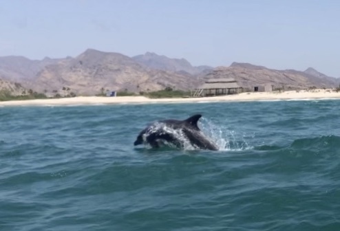 The other ocean view we had during our time in San Carlos was up close and personal. Jacques Cousteau said that the Sea of Cortez was “The Aquarium of the World,” filled with marine biodiversity. People come to snorkel and see huge varieties of wildlife. Dolphins would come and swim alongside our boat, attracted by the wake (and the fact that we didn’t have noisy engines). There was one large group of females, and a couple of adorable baby dolphins, who sped along at our side. Various sea birds bobbed on the surface. We also got to see thousands of two-inch wide purple jellyfish: the Portuguese Man-o-war. We kept our distance from their sting.
