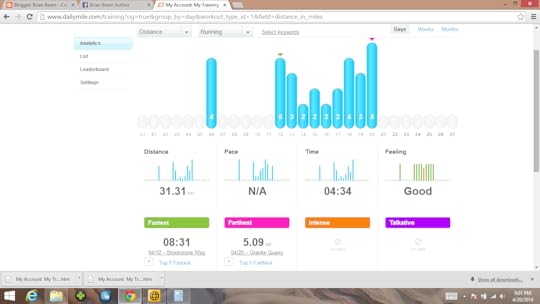 (The 5 miles for 4/12 were actually from 2 runs, one being from 4/11 and posted late, thus 10 consecutive days of running)