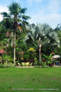 Sepanjang jalan kecil menuju ke ‘istana hinggap’ itu penulis ‘dihidangkan’ dengan gambaran awal keindahan taman seperti yang diceritakan oleh kawan-kawan yang pernah sampai ke sini. Pokok-pokok hutan dan dan ada juga yang ditanam memagari setiap langkahan seolah mengucap selamat datang. Terasa diri bagaikan tetamu istimewa yang diundang ke pura cendana