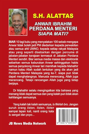 Apabila S.H. Alattas atau lebih mesra Pak Habib menghulurkan buku terbarunya ‘Anwar Ibrahim Perdana Menteri Siapa Mati’ sudah tentulah hati kecil tertanda tanda siapa pula yang kena serang dalam bukunya kali ini? Mengambil mood Pilihan Raya Umum Ke 13 (PRU 13), Pak Habib meletakkan cover buku dua wajah hero Malaya iaitu Anwar Ibrahim dan Najib Tun Razak.