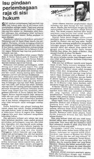 Sampai bila kita nak biarkan lidah kita jadi lidah syaitan? Jika Sultan tidak sembahyang dalam masjid, Imam tetap doakan kerabat diRaja dan keluarganya. Orang kita dalam masjid berebut cium tangan Raja; kalau tidak cebok tidak ke najis?Selain Kamal Hisham ada seorang lagi peguam yang cerita pada saya yang Sultan kencing tidak cebok. Jika saya ke mahkamah saya akan sepina peguam yang ada hubungan dengan Kamal Hisham. Kalau Raja kencing tidak cebok, rakyat pula berak tidak dicebok.Akibat Melayu tidak lagi punya jati diri, mereka tidak nampak kemungkaran yang berlaku dalam rumah Allah akibat tidak mahu berfikir.Agama ikut tok-nenek mereka, bukan ikut Al-Quran dan Sunnah.Sedangkan Al-Quran itu diturunkan untuk mereka yang berfikir.Sudah 55 tahun merdeka tapi siapa pun tidak berani tegur; saya tidak takut Allah murka. Semoga dengan teguran yang ikhlas ini akan menyelamatkan bangsa Melayu yang semakin hari semakin teruk dari segi adab moral.