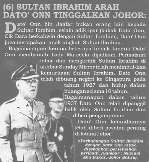 Negara kita sudah merdeka hampir 55 tahun, nampaknya yang betul-betul merdeka di negeri Johor adalah saudara dan kerabat diraja Johor boleh bermaharajalela di atas jalan raya, ada askar sendiri, apa polis yang ikut saja perintah kerabat diraja. Perangai macam itu amat tidak disenangi oleh penduduk negeri Johor. Awak jangan lupa bahawa sudah tidak ada lagi status “rakyat Johor” seperti di zaman Tok awak, Sultan Ibrahim ketika menjadi sultan. Akibat mengkritik Sultan dalam Sunday Mirror, Dato’ Onn dibuang negeri ke Singapura. Onn Jaafar dan keluarga terpaksa hidup sebagai nelayan di Singapura. Sedangkan Dato’ Onn bin Jaafar adalah adik ipar sultan. Cik Dara, kakak Dato’ Onn adalah isteri Sultan Ibrahim.