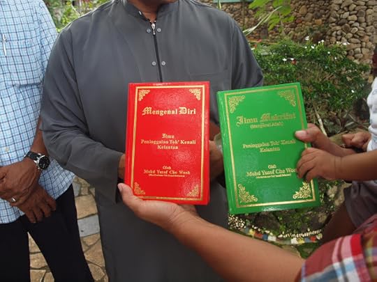 Bertuah pada kami yang hadhir bila kami didatangi oleh dua pakar dalam ilmu ini yang datang tanpa diundang untuk sama sama berkongsi ilmu.Seorang adalah anak kepada "anak murid" Tok Kenali dan seorang lagi dari Seremban yang juga dari pengajian yang sama.Dua buku (merah dan hijau) yang ada lihat dalam photo ini adalah hasil nukilan bapanya Mohd Yusof Che Wook yang merupakan anak murid sebenar Tok Kenali.