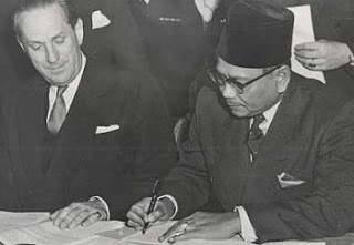 Perjanjian Kemerdekaan: Tunku Abdul Rahman (kanan) menandatangani perjanjian 'Merdeka' di satu majlis di Lancaster House, London pada 8 Feb 1956. Sebelah kiri ialah Alan Lennox- Boyd, Secretary of State for the ColoniesTiba-tiba hati kecil saya bertanya negara sudah meredeka selama 55 tahun , apakah kita sudah merdeka? Pada tahun 1952, saya makan ‘nasi merdeka’ di rumah almarhum Tunku Abdul Rahman yang beralamat di No.1, Jalan Sekolah Arab, Johor Bahru berhadapan dengan rumah saya, No.14, Jalan Sekolah Arab, Tunku pernah menulis surat kepada saya kerana kandungan buku Challenger Siapa Lawan Siapayang menyebabkan Tun Musa Hitam menyaman saya sebanyak RM1.5 juta. Dia kalah merebut kerusi Timbalan Perdana Menteri lawan Tun Gaffar Baba kerana buku tersebut.