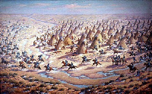 The basics are, a surprise attack at dawn of November 29th, 1864, with 675 volunteer soldiers commanded by Col. Chivington, struck a village of about 700 Cheyenne and Arapaho, which was made up of warriors, women and children. Those in the village didn't stand a chance, and the barbarism that followed the attack still gives Chivington a name that goes down in ignominy.