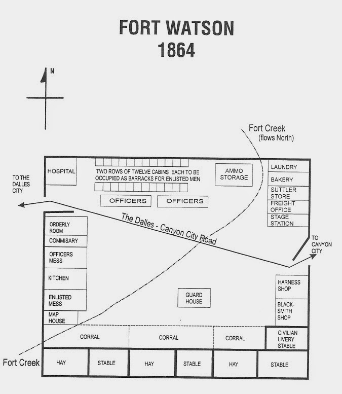 There actually had been two Watsons. One was Fort Watson for the 1st Oregon Cavalry, all volunteers who were assembled in 1862 to deal with the Indian problems. They were disbanded in 1865 when the Civil War was over and federal troops were sent West. At that time, the fort was moved east and called Camp Watson . Or so might be the case and it lasted until 1869 when it was abandoned. If you read that link, you see the problem in all this-- many versions of the same 'fact.'