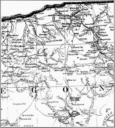 My hero was serving as captain of this post on Fort Creek which is over one hundred miles southeast of The Dalles and a little less than forty miles west of Canyon City. When he served there, the post was called Camp Watson. There actually had been two Watsons. One was Fort Watson for the 1st Oregon Cavalry, all volunteers who were assembled in 1862 to deal with the Indian problems. They were disbanded in 1865 when the Civil War was over and federal troops were sent West. At that time, the fort was moved east and called Camp Watson . Or so might be the case and it lasted until 1869 when it was abandoned. If you read that link, you see the problem in all this-- many versions of the same 'fact.'