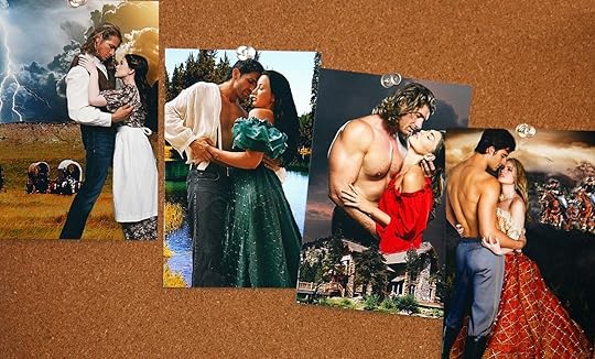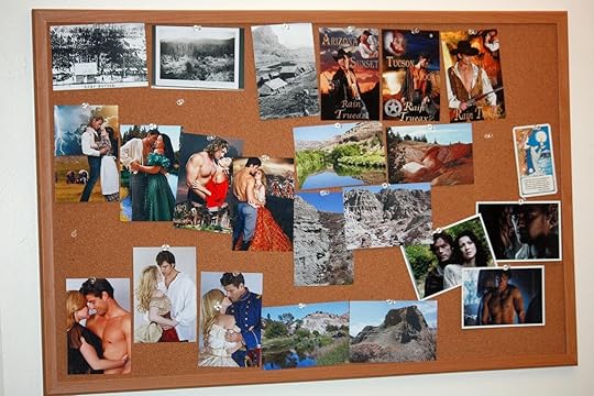 For every book I have written and by now there have been 15 published (one of those has 3 separate romances within it), I am always presented with the challenge of the general plot swirling around these characters-- but most of all this couple and how they have come to want each other. The stages of romantic love are important to keep in view. The images on a board help me do that.
