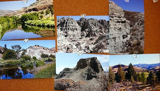 From research, I have a selection of old photos of the communities. Below them are what I plant to be the covers for the four books (although I know the titles, I will wait on adding them-- this is about the energy of the characters for each). Below that are the hero and heroine for the fourth story-- looking to the right are scenery images. I have spent a lot of time in the John Day area, but photos refresh my memory and bring it back to me. Above, unrelated to this book are the three covers from my Arizona historicals-- below that a couple of snaps from the Starz series, Outlander that represent passion between a man and woman-- something I always try to keep on my mind when writing a love story.