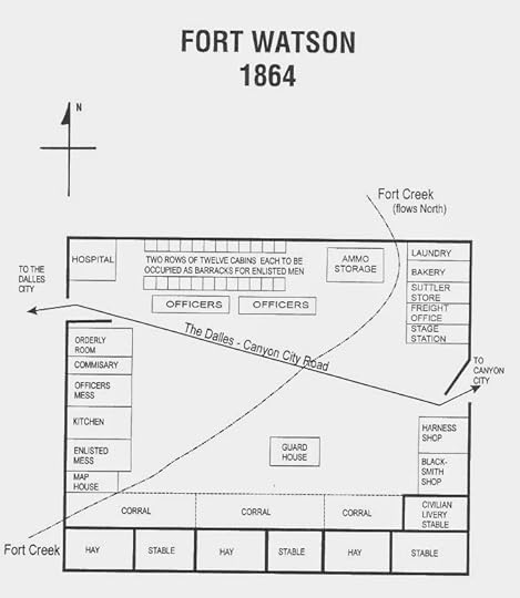 My hero was serving as captain of this post on Fort Creek which is over one hundred miles southeast of The Dalles and a little less than forty miles west of Canyon City. When he served there, the post was called Camp Watson.