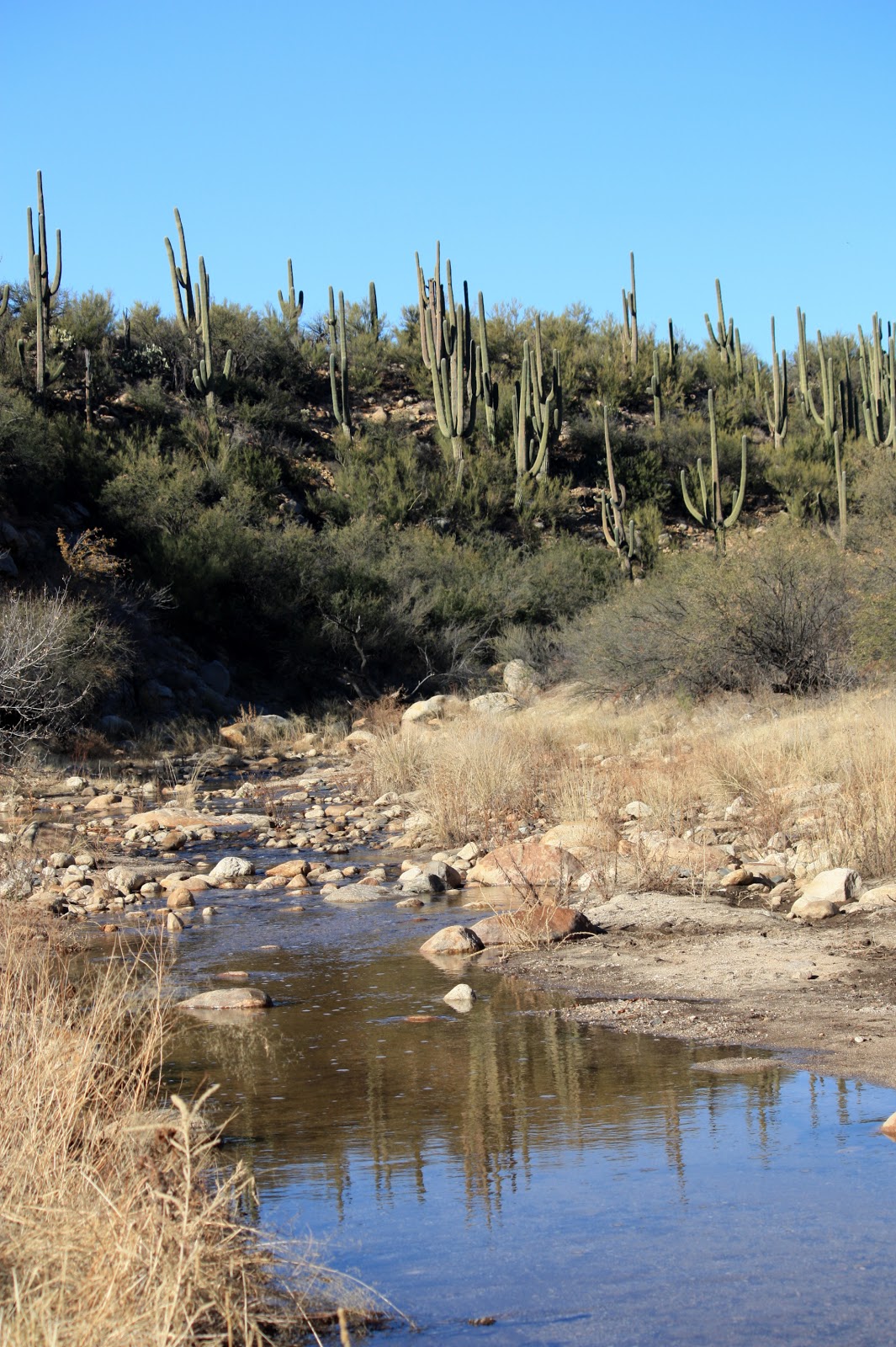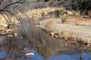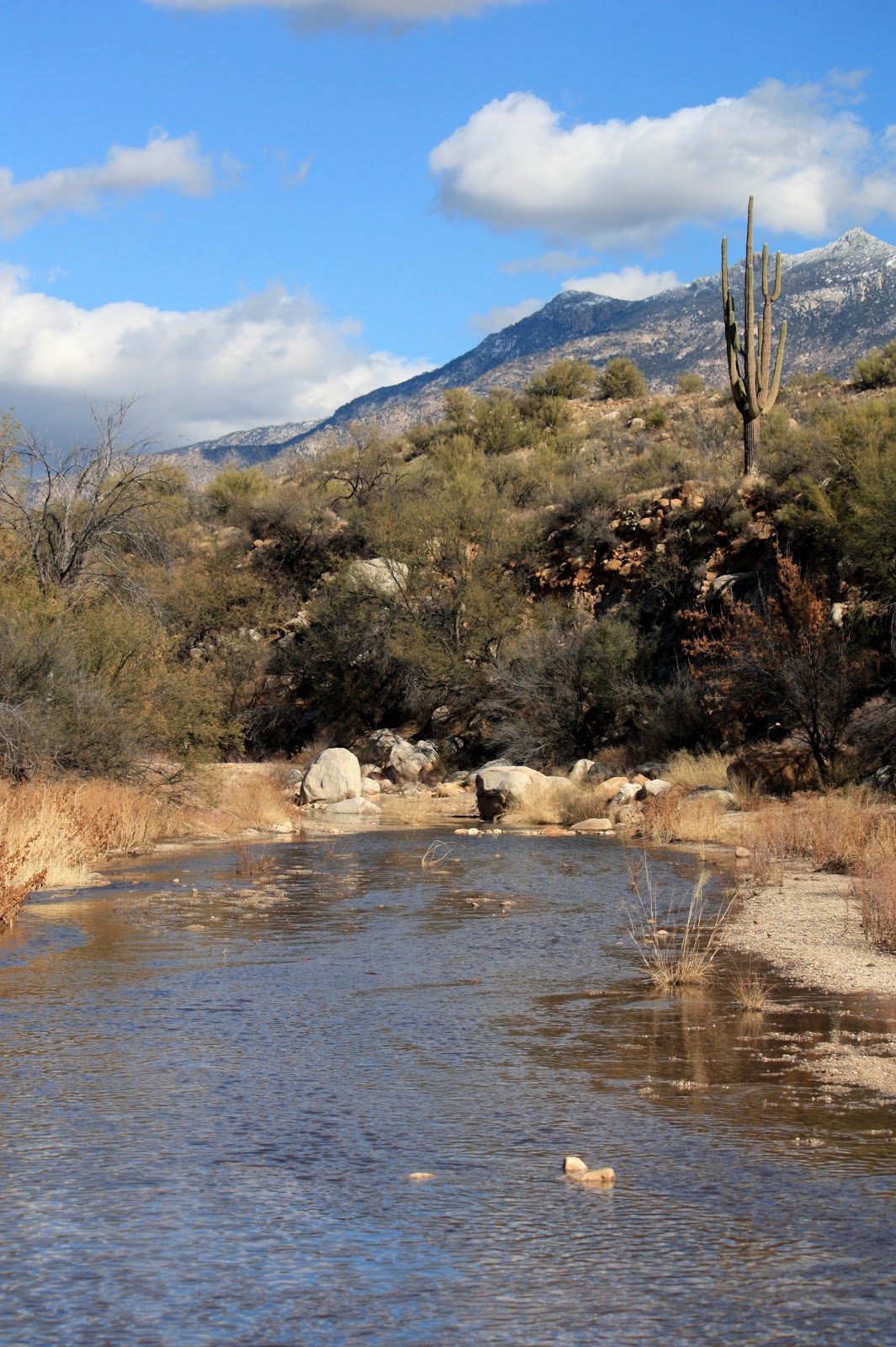 After the rains, Tucsonians know to head for the stream beds. Many will have been dry, sometimes for months. Rain will change all of that, and desert dwellers know it. Because it's winter, the recent rains meant the Catalina Mountains have snow on their tops. That means the streams will have water for awhile as at least some of that snow won't last long.
