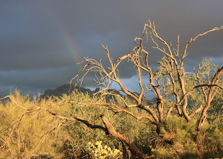 We have had rain in Tucson. Some of it quite heavy. There are two things I love about the desert that are not the norm. One is when it rains because it makes the desert smell so good. The other is the month of August which combines rain, thunder storms and heat. Almost every time we come to Tucson, we do get some rain, but it doesn't last long. Just a day or two and then gone. I totally enjoy it while it's here as does the land.