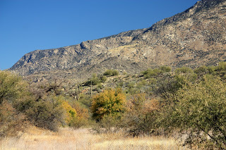 Photographing the desert in late fall and winter yields more fantastic colors with the sun lower on the horizon and not washing out all below it. There aren't the gorgeous colors of the cactus and wildflowers but other colors compensate for that and you do find an occasional wildflower still doing its thing until the hard freeze comes-- and some winters Tucson can go down to 10° F. which means a lot of garden plants have to be hardier than one might expect.