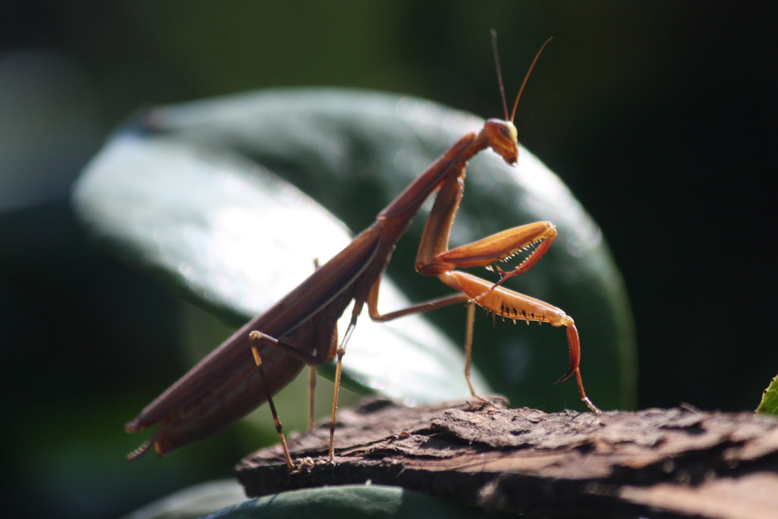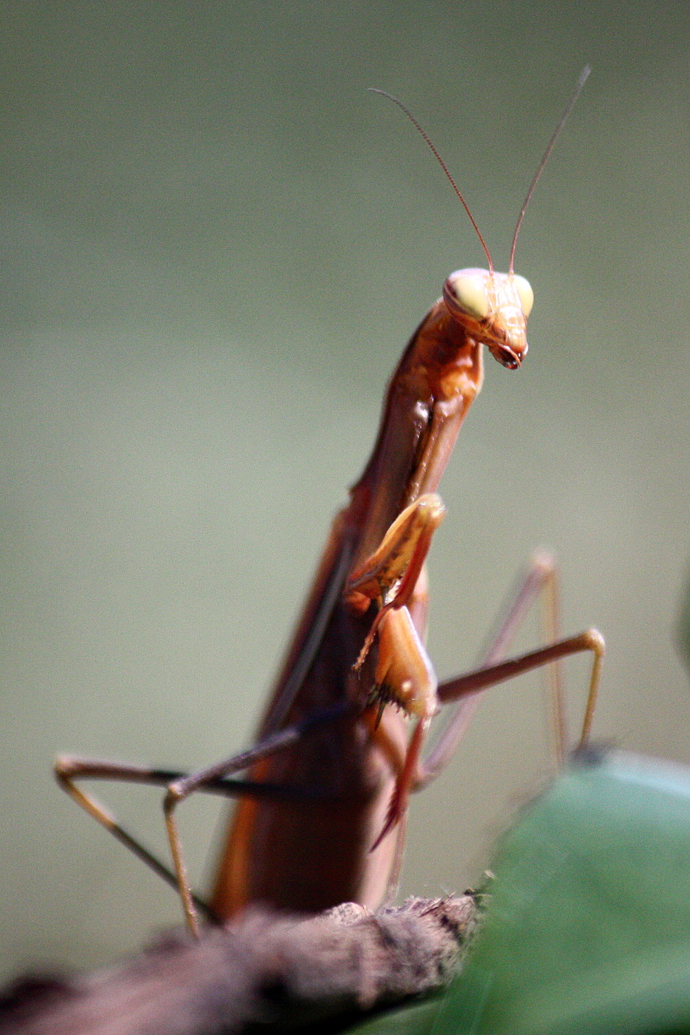 This praying mantis shot, from September 2012, also has a bit of an other earthly feel to it from the big camellia leaf right behind. Being a telephoto shot, the background was lost allowing the insect to have center stage.