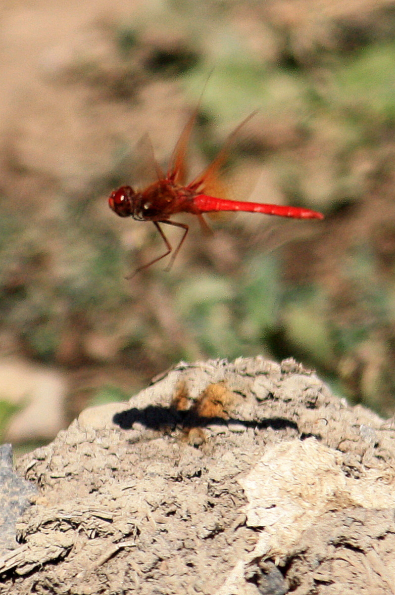 Dragonflies symbolize change as they spend most of their life under water as a nymph. When they emerge, they fly for only a few months before they die. Seeing them like this is fleeting time they fly with beauty and grace. If a character were to see dragonflies where they did not expect, it would seem a possible indication of major change coming.... if one believed in symbols.