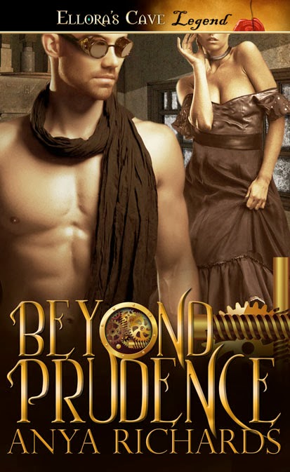 Beyond PrudenceSteampunk erotic romanceEllora’s Cave: http://www.jasminejade.com/p-9557-beyond-prudence.aspxAmazon US: http://www.amazon.com/Beyond-Prudence-ebook/dp/B005M2ANYE/ref=sr_1_4?s=digital-text&ie=UTF8&qid=1333830388&sr=1-4B&N: http://www.barnesandnoble.com/w/beyond-prudence-anya-richards/1105607266?ean=9781419968099Kobo: http://store.kobobooks.com/en-CA/ebook/beyond-prudenceBlurb:The mysterious device in Prudence Hastings’ basement could be the answer to her prayers, if she could just figure out what it is. Needing William Foreman’s help, she’s prepared to do whatever it takes to gain it. Even putting aside her dislike of machines and volunteering to test the risqué apparatus he’s developing for the Acolytes of Concupiscence.Will’s expecting a lightskirt for a test subject and is horrified when he realizes the tempting woman he just debauched is very much a lady. But despite his best intentions, something keeps drawing him back to her, and it isn’t just the thought of discovering the inner workings of her uncle’s last invention. Unlocking their passion is turning out to be a far more pleasurable, if dangerous, job.Beset by desire, automatons, secrets, an unintelligible maid and the danger of utter ruin should their association become known, Will and Prudence haven’t a chance in hell of remaining unscathed.Fire up the boiler, open the sluices and take cover. Something’s about to explode…Excerpt One: