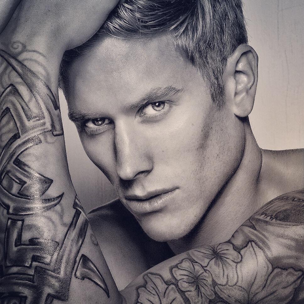 Being tattooed has it's downsides. I have been turned down a lot of work especially in the midwest from my partial sleeves. The ones on my thigh were the first tattoos I ever did with a professional gun. California is different though, because tattoos are everywhere and more acceptable. The only thing that's set me back from more on camera time modeling and acting are my knuckles which say "hardcore" - music genre/the whole straightedge lifestyle I used to do but I'm in the process of lasering them off.