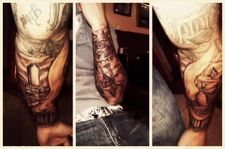 Lea Note: Me thinks he's going to need more skin for all these tats... or perhaps they can be placed in fun places...