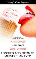 Can I just say that I LOVE our Fondled and Gobbled covers. LOVE THEM! Fondled and Gobbled is a set of erotic spoofs. A group of erotic romance authors, me included, took on some of our favorite genres and lovingly poked fun. They are hilarious! Our first two books, F&G: Someone Had To Do It and F&G: Going Back For Seconds, cover so many fun tropes. Science fiction, shifters, Doms, MM... I could go on.The next three books are going to be even better. We've added three new authors, Cara Carnes, Sky Robinson and Justin Whitfield. If you want to hang with the nutjobs, I mean crazies come on over to The Cabal of Hotness blog.
