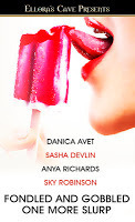 We've just released our first two volumes of Fondled and Gobbled, a set of spoofy parody erotic stories. The perfect man—with the imperfect cock and oral skills. The Dom who isn’t a dom, and the man who proves it to him. The alien with dessert-flavored semen and three cocks. The older man (a kajillionaire with a penthouse in Seattle…) who has limitless ability to come all night with his naïve little virgin. A woman on a diet who craves a feast of meat and finds herself five Broadshaft Brothers who can deliver.If you’re looking for the perfect romance with the perfect hero and heroine, this isn’t it! This is a series of spoofs, parodies, just-for-fun lighthearted take-offs. It’s for all us longtime, hard-core romance readers who can laugh at the clichés, purple prose and “suspend your disbelief” plot devices that haunt our beloved favorite genre.