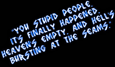 But The Second Coming’s greatest strength is much more abstract than its spectacle. Unlike most dramas, it has an ability to make people who don’t often turn their mind to such things consider their place in creation, whether they want to or not. Even watching The Second Coming through the eyes of an agnostic who puts no stock in any religion (morally laudable and duly comforting though they all may be), it’s hard not to be taken aback by the sheer weight of the subject matter, particularly when it’s delivered with such candid fervour. The line, “You stupid people. It’s finally happened. Heaven’s empty. And Hell’s bursting at the seams,” for instance, is one of the bleakest things that I’ve heard; it implies that we’re so lost, so hollow, so morally bankrupt that everyone who’s ever lived, even the very best of us, either couldn’t hack it Heaven or didn’t get an invite to start with.