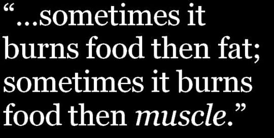 For most of 2013 I trained with as heavy weights as I could handle on Saturdays or Sundays, Tuesdays and Thursdays for sixty to eighty minutes, and did a lot of cardio on the other three weekdays (eight miles’ running, six or seven miles’ very brisk walking). I weighed myself and measured my body fat most mornings, looking for trends, and body fat was invariably higher on a morning after a heavy cardio day, leading me to conclude that, in my case at least, my body probably does often sacrifice muscle to meet its incredible energy demands. This obviously became something of an obstacle when it came to me gaining some decent mass - even when consuming as many as 4000kcal (gross) every day, my lean weight was only just being maintained over most weeks; some weeks it actually fell. My brother’s solution was to consume around 600g of slow-burning carbohydrates throughout the daytime along with the requisite protein (my eight-mile run finished the day as it was how I got home from work) to meet the demand before the event and thus safeguard the muscle. I tried this once and ended up having to take a shit in the woods at around the seven-mile mark, by which point I’d already long-since decided that the practicalities of this plan hadn’t been fully thought through, having waddled at a snail’s pace through town and out into the countryside, farting all the way.