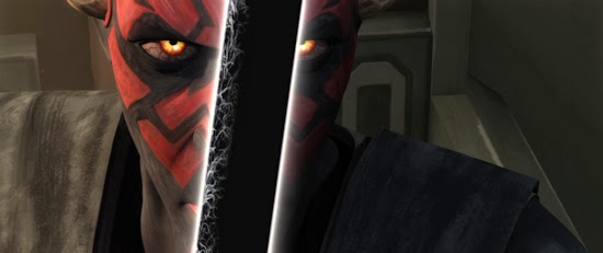 Indeed, the series’ animation belies some surprisingly adult and sophisticated themes – themes that are invariably meshed delectably with what Doctor Who fans would call “fanwank” and that are always encapsulated by a bite-sized slogan. The show’s second season, for instance, caught up with Boba Fett in the wake of his father’s demise, and shed some light on how his quest for revenge against the Jedi led him to a life spent hunting bounties. The next year showed us the beginnings of Tarkin’s ascent to power; explored Chewbecca’s pre-Solo solo adventures; it even featured a number of episodes that explored the prophecy that Anakin would bring balance to the Force, offering viewers a more literal interpretation than the anything-but-balanced “He’ll destroy the Sith…” one, while at the same time allowing them to see him impossibly raging against the dark future clearly crystallising before him. The following season upped the ante further, reintroducing the now delectably-deranged torso that was once Darth Maul, and teaming him up with his Zabrak brother, Savage Oppress, against the odd couple of Jedi master Obi-Wan Kenobi and fallen (risen?) Sith Asajj Ventress. All the politics, all the subtext, all the myth and all the legend – it’s all here, all punctuated with stunning set piece after stunning set piece.
