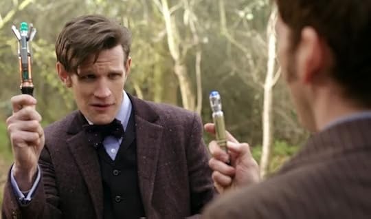 And so, though it deliberately confused the polarity of the neutron flow and sold out to the Happy Ending Brigade in a manner that makes the events of Journey’s End seem innocuous in comparison, The Day of the Doctor was without question the Doctors’ finest hour - every single one of the splendid chaps, Hurt’s included - and it was a finest hour felt concurrently around the world, crossing continents and time zones and setting simulcast world records. I’ve written this piece, quite aberrantly, in the past tense because I don’t feel like I’m reviewing a film or an episode that can be revisited with the same effect - I’m recalling a discrete event. For fifty years, the question’s been, “Where were you when Kennedy was assassinated?” The question now is, “Where were you on The Day of the Doctor?” Me, I was on my sofa, torn in half, smashing up an iPhone, completely and utterly rapt.