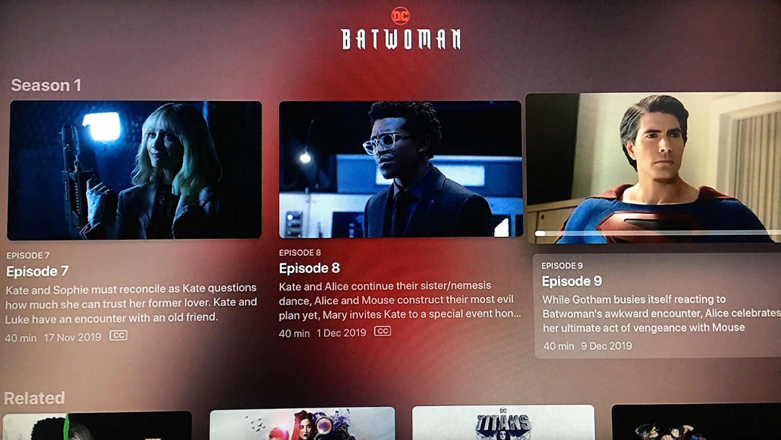 For reasons known only to them, E4 have stated that they will air the Batwoman episode of Crisis on Infinite Earths at the end of the season later this summer. If you to try to stream what is erroneously labelled as “Season 1, Episode 9” on All4 you will in fact get Season 1, Episode 10 - “How Queer Everything is Today!” This comes as a particularly nasty shock if you try to stream it via the Apple TV app, which pulls some of its metadata from Apple rather than E4.