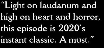 In almost forty seasons of television, “The Haunting of Villa Diodati” stands out as one of just a handful of episodes that gets everything right. Its characterisation is superb, it balances humour and horror exquisitely and, whilst its twists and turns will probably floor you, they work so perfectly that you are left feeling the story couldn’t really have gone any other way. Light on laudanum and high on heart and horror, this episode is 2020’s instant classic. A must.