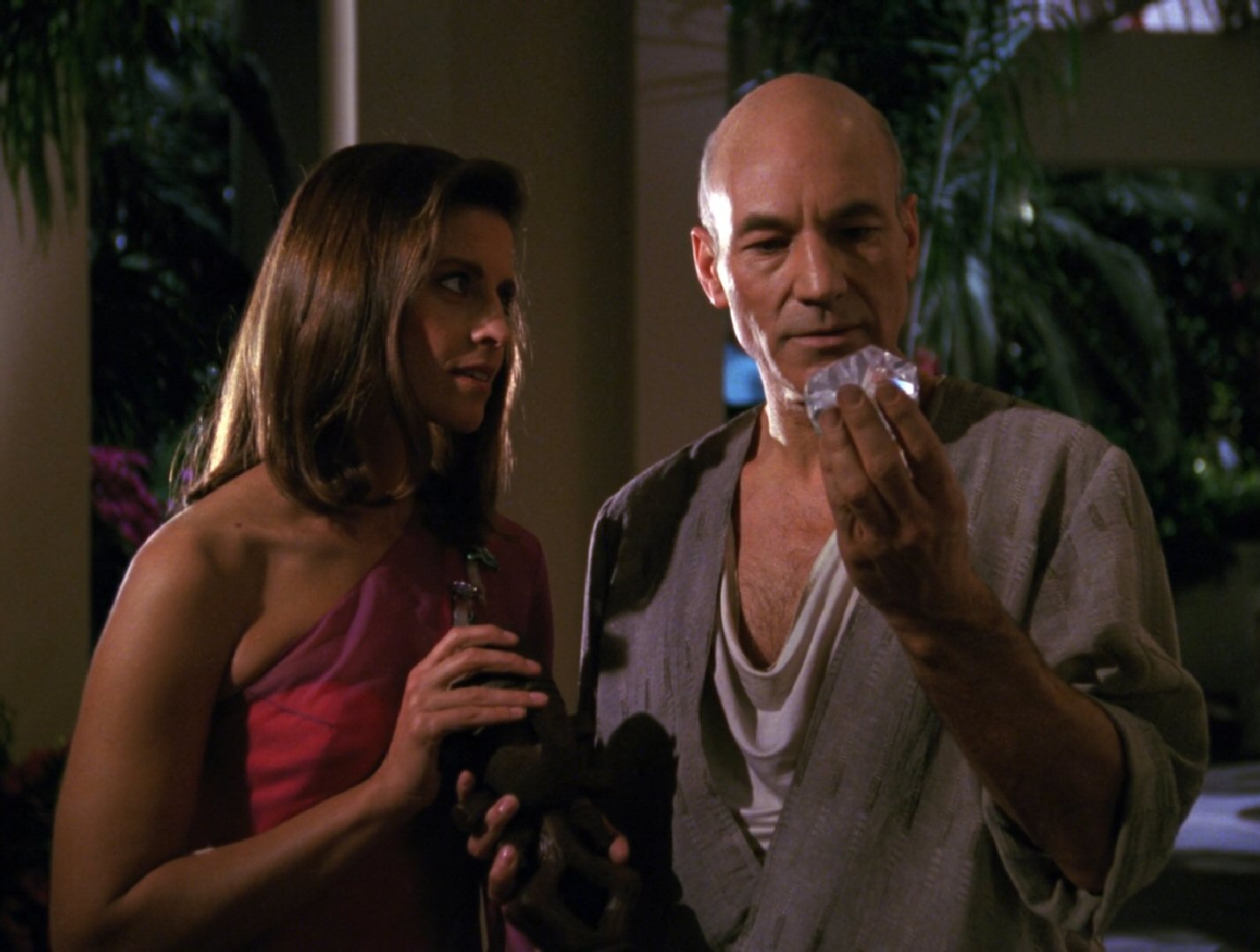 And whilst the season saw the obligatory returns of John de Lancie’s riotous Q (in the surprisingly pensive, if somewhat on the nose, “Déjà Q”) and Majel Barrett Roddenberry’s Lwaxana Troi (in the abovementioned “Ménage à Troi”), it also introduced us to new recurring characters. Within the space of a season, the show had a given rise to a sprawling mythology – one that would evolve over the next four seasons and into the movies, as well as sideways into Star Trek: Voyager (“Voyager”) and particularly Star Trek: Deep Space Nine (“DS9”) and even backwards into Enterprise. Andreas Katsulas made his first appearances as Picard’s Romulan foil, Commander Tomalak, during this run, while “Sins of the Father” introduced us to Charles Cooper’s fat Klingon Chancellor K’mpec and Patrick Massett’s loathsome Duras in addition to Worf’s big scary bro. Meanwhile, my favourite-ever Star Trek character, Colm Meaney’s Chief O’Brien, began to feature more heavily ahead of his elevation to near series regular status in Season 4, and the unforgettable frolic “Hollow Pursuits” introduced Dwight Schultz’s (The A-Team) Reginald Barclay – a brilliant engineer but socially feeble holo-addict who served as a walking, talking slap in the face to Gene Roddenberry’s vision of utopia. Fortunately for the ailing Gene – and, indeed, Patrick Stewart, who was famously keen to get into some “fucking and fighting” – balance would be restored by the unashamedly Kirk-like “Captain’s Holiday”, which introduced the lovely Jennifer Hetrick as Picard’s reckless lover, Vash in a mad treasure-hunt romp that, unaccountably, managed to emphasise the captain’s ubiquitous uptightness rather than see it shed.