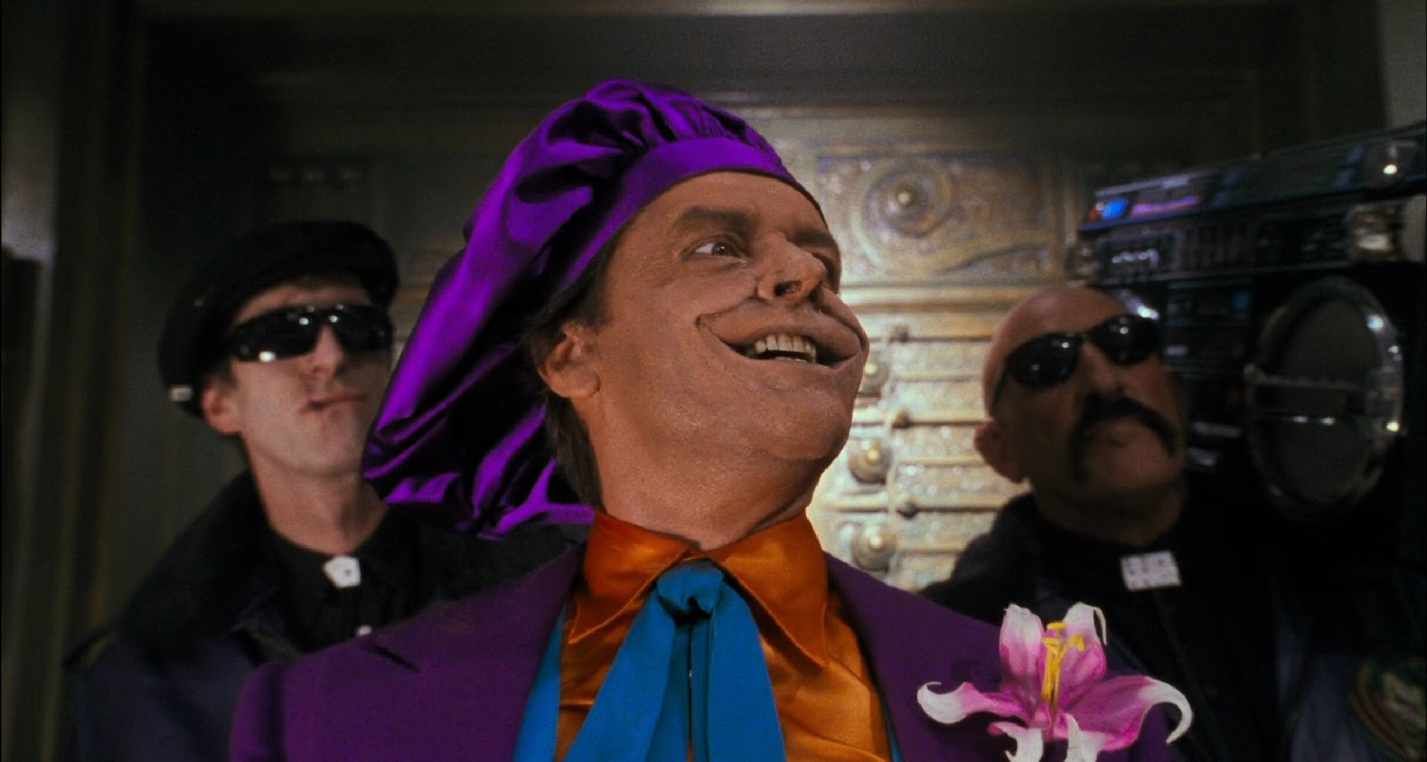 A final outstanding aspect of this movie is its zany, high-concept soundtrack. Injected into the gothic splendour of Gotham City is a colourful burst of late-1980s pop courtesy of Prince, who provided Warner Brothers with an entire album’s worth of tie-in material, much of which is used on screen. Joker’s bombastic assault on the art gallery stands out especially as an iconic moment in cinematic history – a bizarre fusion of darkness and colour that seems to encapsulate everything Joker. And woven in amidst the likes of “Partyman” is prolific composer Danny Elfman’s most stirring score, which includes a Batman theme that would prove every bit as enduring as the rest of the movie and finally lay the ghost of “Der, ner, ner, ner, ner, ner, ner, ner…” to rest. It’s so effective and rousing a composition that it would be immortalised by Bruce Timm’s subsequent animated series, with which it would become synonymous, and even memorably reprised in 2017’s Justice League movie.