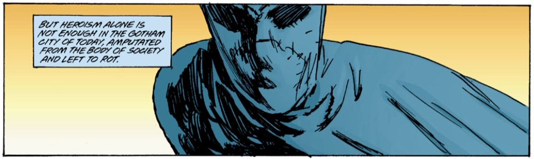 It’s often said that Tim Burton’s Batman was heavily inspired by Miller’s Year One, but in truth the movie’s long genesis pre-dates Batman’s post-Crisis reboot by the better part of a decade. Burton’s movie may certainly be a clear steer towards the darkness of the fan-favourites of the late 1980s, but it’s a heightened, romantic sort of darkness – all mist, melody and melodrama. Even Sam Hamm and Warren Skaaren’s script is unique, taking great liberties with character and canon in order to tell a complete and satisfying story within the film’s runtime. Jim Gordon, the beating heart of Year One, is little more than an slow-on-the-uptake extra in the film, and the police force at his command is as bent as the force that the young lieutenant finds in print. Bruce Wayne isn’t a recent returnee to Gotham here, but a well-established pillar of the community – and, crucially, a much more conflicted one that the purposeful twenty-something envisaged by Miller. If anything, Tim Burton’s film is a noirish love letter to the earliest days of Batman in the old Bob Kane comic books – a lone detective behind the scenes, a silent spectre in the dark.