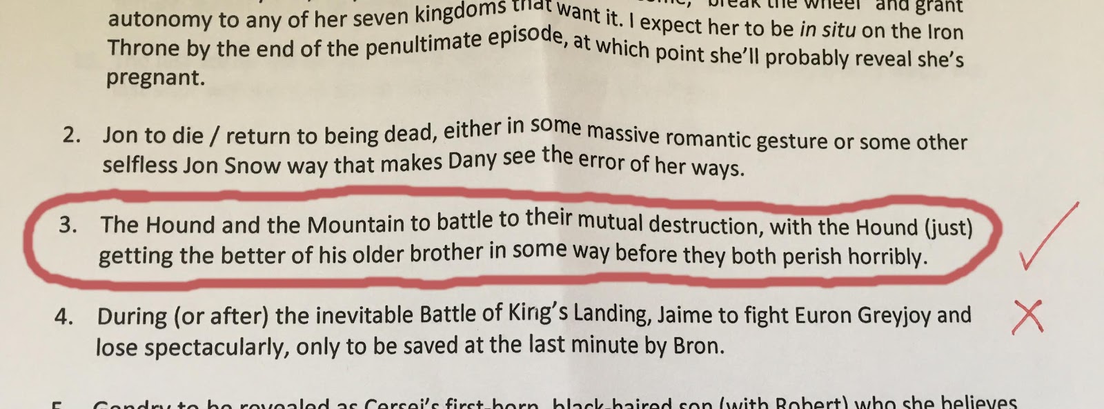 With the exception of its obligatory Cleganebowl, which I had pretty much written the stage directions for in my post-“Long Night” predictions, the series’ penultimate episode delivered a relentless precession of shock and awe. Even its more contemplative opening act, which continued this season’s welcome steer back towards the addictive and complex intrigues that first put the show on the map, was ultimately defined by dragonfire and the lingering of an old adage from the books that would set the stall for the rest of the episode: “Every time a Targaryen is born, the gods toss a coin and the world holds its breath...” You see, “The Bells” wouldn’t “just” be the eight-years-in-the-making final battle for King’s Landing. It wouldn’t even just be Varys’s metaphorical coin completing its rotation before crashing to ground aflame. It would be the most shocking episode of the series since the Red Wedding in “The Rains of Castamere” six years ago; perhaps the biggest double-flip in the whole of entertainment since the WWF’s Bret “Hit Man” Hart exchanged cheers for jeers with “Stone Cold” Steve Austin at WrestleMania 13.