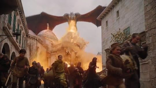 In similar fashion, “The Bells” succeeds at evoking sympathy for a woman I’d long thought to be irredeemable. Lena Headey barely utters a word as her character watches her city burn. Her tight expression scarcely shifts. Even her total defeat is conveyed only by a single, simple tear. All the while, though, Cersei Lannister’s eyes are burning even more fiercely than King’s Landing itself. You know that she’s ruminating on everything that she’s done and everything that she’s endured. Her entire adult life has been dictated by a childhood prophecy; she was fixated on keeping her children alive (“Gold shall be their crowns and gold their shrouds…”), only to fail, and now her efforts to prevent her role being usurped by a queen younger and more beautiful have too come to nought. “The Bells” renders Cersei an impotent spectator as the latter part of Maggy the Frog’s prophecy plays out in a Hellish conflagration and she realises that the child she is carrying won’t ever see the world. Again, it might be unpopular with many, but for Cersei it really couldn’t have ended any other way. She said it herself, right back in the beginning: “You win or you die.” Having her go out with a sword in her hand or Needle in her back would have been wasteful. She had to have everything stripped from her again, one piece at a time: every soldier, every sellsword; even her bodyguard and her loyal hand. A queen is a symbol of power, and Cersei was forced to look on as the source of that power vanished before her. What made it all so bloody impressive, though, was the fact that the show managed to engender pity for her. At one point, despite everything, I was actually rooting for her to win, just as I was against the Faith Miltant in “The Winds of Winter”. There is always a greater evil, and from a certain angle even the darkest grey can look like shining white. Now that's the Game of Thrones that I fell in love with.