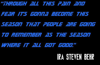 There is no argument about it, TNG’s third season put it on the map. True to its new executive producer’s mandate, every single episode – except “Ménage à Troi”, obviously – was about a character’s growth, and every single episode was “about something”. The BBC wouldn’t broadcast “The High Ground” as it dared to explore terrorism from both sides. “The Hunted” served as a damning indictment of society’s failure to help war veterans return to society – a particularly prescient issue on the eve of the Gulf War. “The Defector” and “The Enemy” turned the Romulans from faceless adversaries into relatable foes with wives and children, yet without undermining the threat that they posed. “Hollow Pursuits” addressed hiding behind technology decades before it was a thing; Reg could just have easily been living through his iPhone and watching virtual-reality porn as hiding in the holodeck - the character arc would have been exactly the same. “Yesterday’s Enterprise” took a trope as well-trodden as time travel and slammed into another – that of the parallel world – yet still managed to tell a simple, moving story about a lost soul falling in love. Trek at its best.