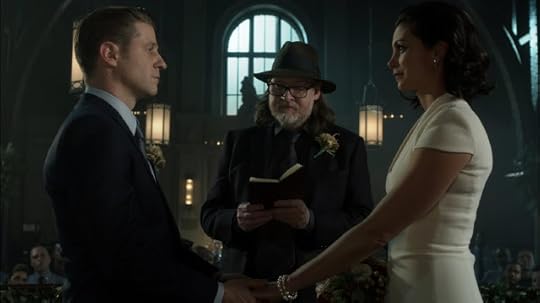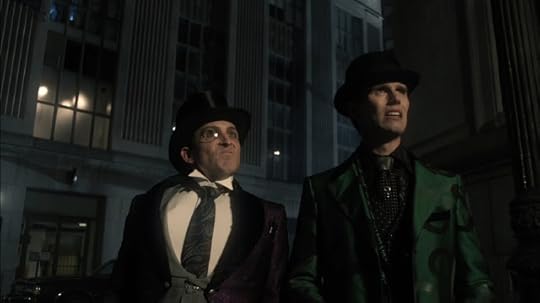 Flashing forward to ten years after the events of “They Did What?”, the concluding part of the No Man’s Land storyline, “The Beginning” is an awkward but necessary leap - one charged with expectation as viewers brace themselves for the rise of the villains and the coming of the Bat. The trouble is, most of the villains rose long ago, and the Bat can’t really be shown on screen, lest viewers twig that he’s being played by a stuntman and a teenager. David Mazouz’s near-absence is felt almost as keenly as Camren Bicondova’s recasting – half the episode’s heart is tied up in two characters, one of whom we can’t see and the other whom we can’t recognise. Worse still, Penguin and the Ridder are reduced from believable, multi-faceted characters to colourful caricatures torn straight out of a show cancelled fifty years earlier. When Penguin emerges from his decade-long incarceration somehow fatter and donning a monocle, you half expect Adam West and Burt Ward to come running around the corner to escort him back to Blackgate.