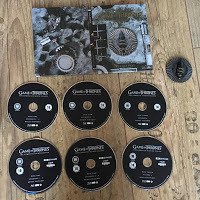 The steelbook itself is presented in a style largely in keeping with its seven predecessors’, despite the addition of the three 4K UHD discs here on top of the three Blu-rays. Its artwork is gorgeous, evoking the iconic map traversed by the series’ much celebrated title sequence, only rendered in a neutered near-monochrome palette that’s tastefully accented with browns and golds. The set even includes a magnetic sigil that nestles perfectly over its corresponding image on the front, which will no doubt please those who’ve collected all eight across the series. Once my steelbook has been shelved, though, my magnet will probably end up on the fridge alongside Heisenberg and the other “collectable” Blu-ray magnets that I’ve accumulated over the years.
