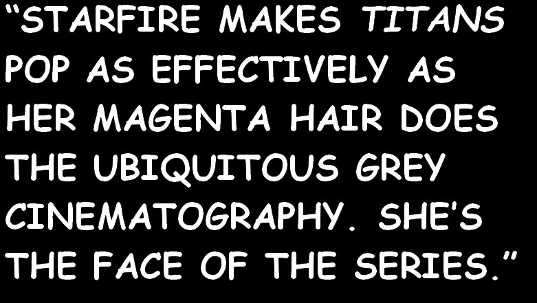 Much was made of the casting of Anna Diop (24: Legacy) as Kory / Starfire, and as someone who nearly melted when Doctor Who changed gender, I can at least understand why avid fans take umbrage with changes in the realisation of much-loved characters, if not how they often express their ire. But with Kory, all the show has done is to change the colour of her skin; it’s no more contentious than casting Grant Gustin as dark-haired Barry Allen or having Stephen Amell play a Green Arrow free of that embarrassing bycocket. That’s certainly not to say that a character’s skin colour can’t be inviolate when it’s central to who that character is or what their story represents - within the worlds of DC, having J’onn J’onzz masquerade as a white man just wouldn’t work, for instance - but that is clearly not the case with Starfire. As a character, Kory remains true to the comics in every significant way, and Diop’s playful bad-ass performance is breathtakingly good. Starfire makes Titans pop as effectively as her magenta hair does the ubiquitous grey cinematography. Make no mistake, she’s the face of the series - the image that lingers once you look away from the poster.