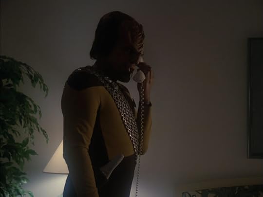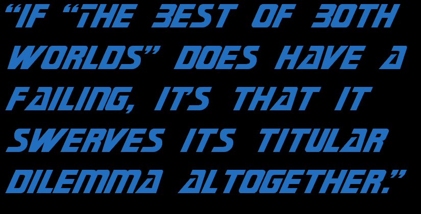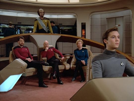 If “The Best of Both Worlds” does have a failing, it’s that it swerves its titular dilemma altogether. Whilst becoming captain of the Enterprise is the best of both worlds for Picard’s long-serving number one, albeit in the most twisted and nightmarish of ways, his tenure in the big chair is short-lived. In fact, by the start of the next episode he has been demoted back to the rank commander and resumed his former duties. No explanation is offered for Riker’s reduced rank, which is particularly bizarre both within the fiction and without. Narratively, this is the man who has just saved the Earth, if not the entire Federation, from a fate worse than death, while on a production level “Family” would be the first episode in the entire franchise to be charged with addressing the fallout from the preceding story. As such, eschewing Riker’s unfinished story in favour of less pressing (but wonderful and worthwhile) side-steps for Worf and Wesley Crusher seems downright mad.