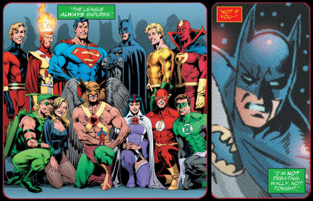 Some might question why I’m focusing on a graphic novel that features precious little of the Caped Crusader in a series entitled Legends of the Dark Knight . And, granted, Identity Crisis isn’t a Batman story in the usual sense - the Dark Knight is really only on its periphery as Meltzer’s narrative focuses more heavily on the investigation led by the Green Arrow. Yet Identity Crisis is as much about the Dark Knight as any other Justice League tale. It’s the story that sets him apart from many of his comrades, not just morally but in a very real sense. The devastating reveals of Identity Crisis would ripple back and forth through the DC Universe, setting the stage for future battles while retrospectively making sense of character tension and even the obvious, logical holes that until this story went hand-in-hand with superheroes’ secret identities. This story’s eponymous crisis applies to just about every hero - and many a villain too - but not to Batman. He knows who he is, and it will never change.