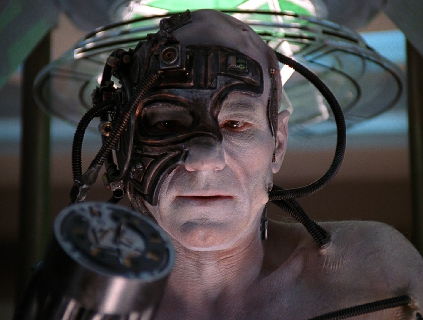 And despite all the odds against it, the fourth-season opener manages to maintain the tension and even escalate matters before resolving the plot in a manner that’s incredibly neat - and incredibly Star Trek. Pillar manages to sell the sheer horror of the Wolf 359 massacre without showing a single shot being fired, while somehow conveying the utter loss of self that Picard suffers without having to rely on the sort of shock tactics that Star Trek: Voyager often would in its subsequent Borg stories. Yes, Picard’s line, “Almost human, with just a bit of a headache,” might have had more impact were he staring at the ruined stump of an arm instead of an oversized (and faintly ridiculous) mechanical glove, but I wouldn’t really be wanting to watch that with my kids.