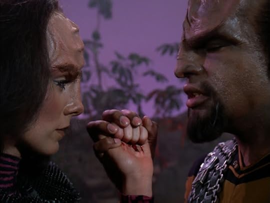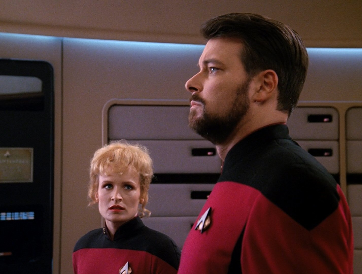This is in no way a bad thing, though, as the contradiction right at the heart of the Enterprise’s supposedly ambitious first officer needed to be addressed, and bringing in a driven young woman like Commander Shelby to force the issue was a real stroke of genius on writer Michael Pillar’s part. With hindsight, it’s a pity they couldn’t have let the Riker / Shelby rivalry play out over a longer period, but “The Best of Both Worlds” was already pushing the envelope in terms of what a weekly syndicated show could get away with. Not putting all the toys back in the box at the end of “Sins of the Father” was contentious enough; Locutus of Borg and a summer of suspense had to be the show’s line in the sand.
