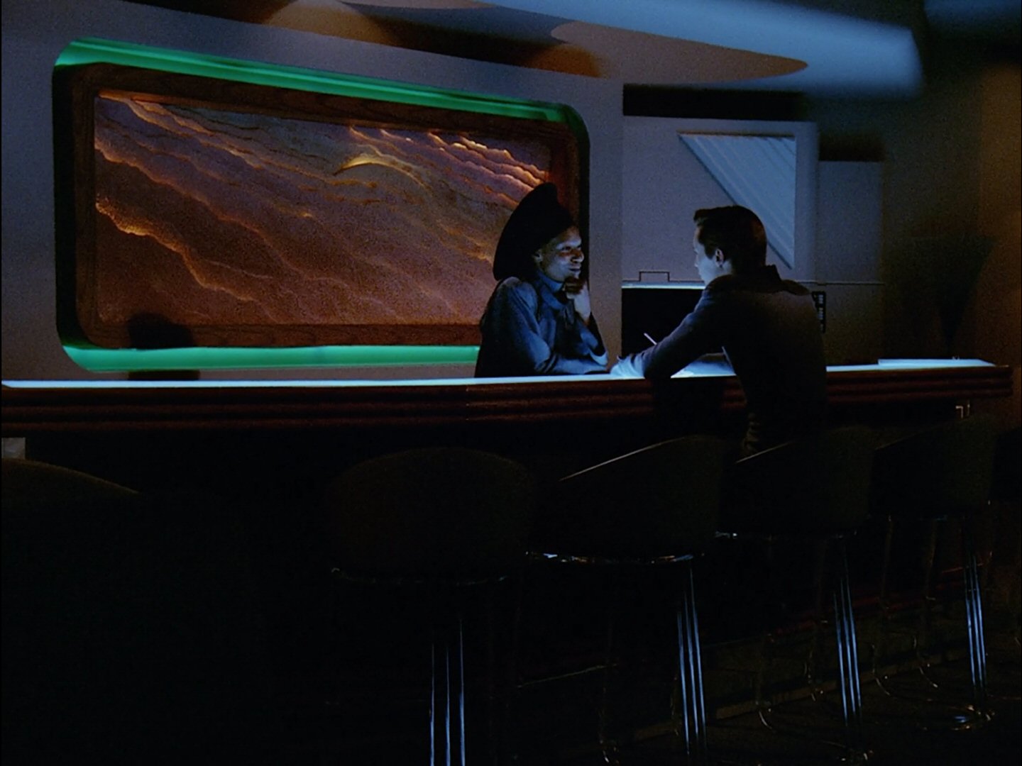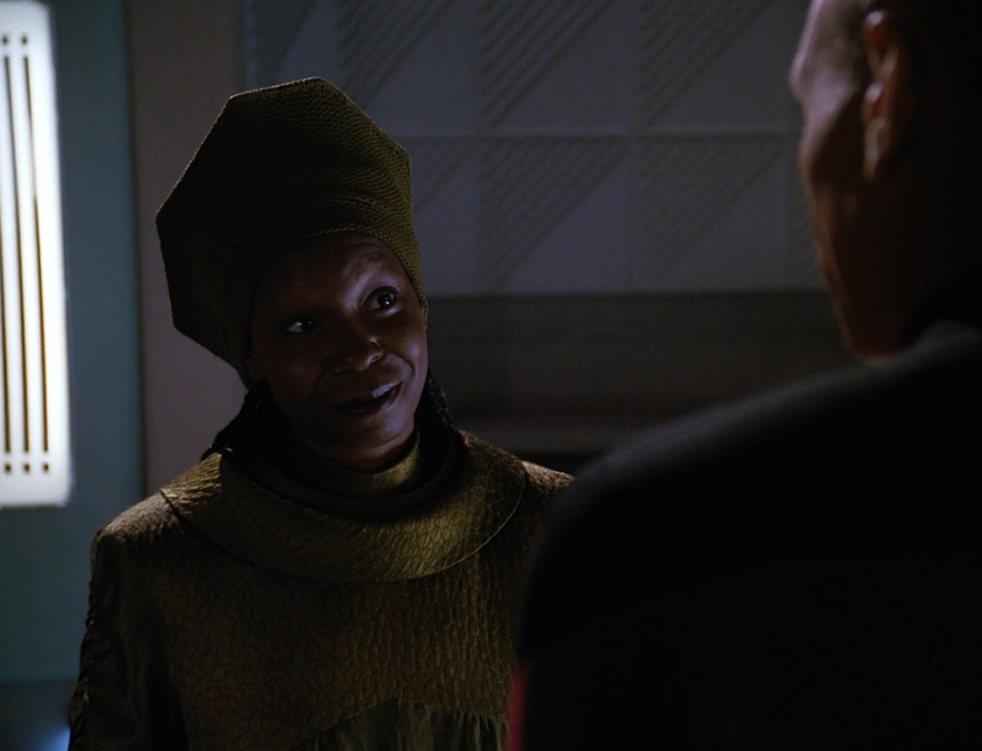 When we meet the crew again in “The Child”, things have changed significantly. Dr Crusher has left to become the head of Starfleet Medical, leaving her teenage son aboard to continue his studies. The second pip on Geordi La Forge’s collar has been filled in with gold to match the colour of his new uniform, as after an inexplicable precession of bit-part chief engineers in the first season, the Enterprise-D finally gets its resident Scotty. Even more significant is the elevation of “Big, dumb, stupid Worf” to chief of security - a role so suited to his Klingon background that it’s incredible he didn’t start the show in it. And there are new faces too - one of them, a Hollywood star. Having been inspired by Nichelle Nichols’ role in TOS, Whoopie Goldberg requested a birth aboard the Enterprise-D, and would soon find herself there, serving as not only an exotic bartender, but also everything else from adolescent agony aunt to captain’s confidante.