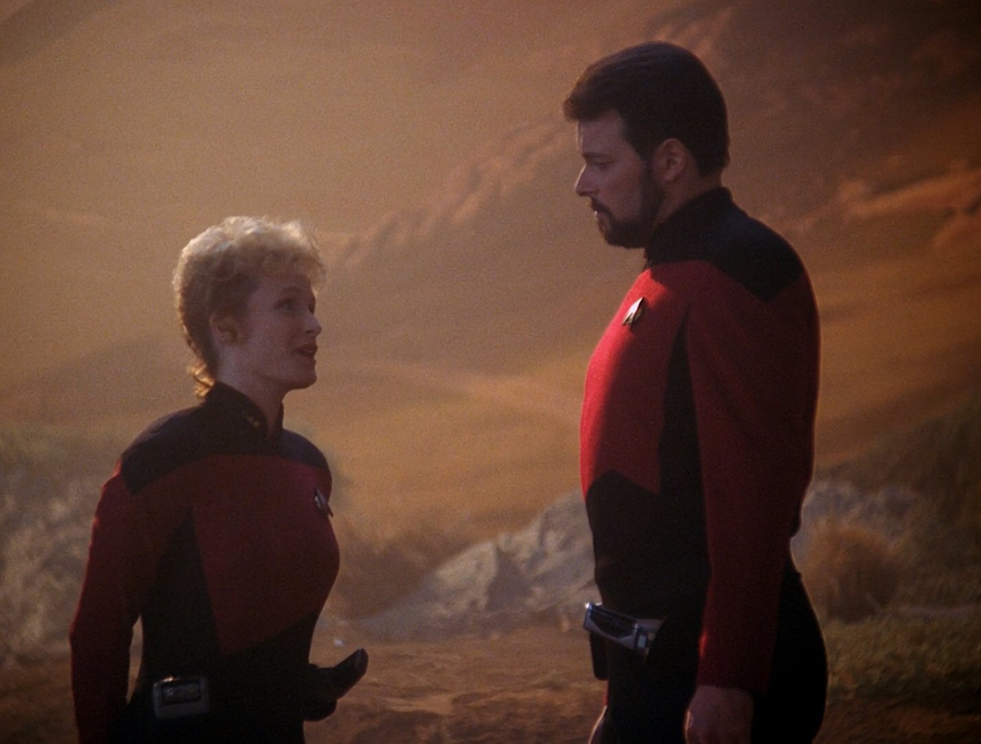 This is in no way a bad thing, though, as the contradiction right at the heart of the Enterprise’s supposedly ambitious first officer needed to be addressed, and bringing in a driven young woman like Commander Shelby to force the issue was a real stroke of genius on writer Michael Piller’s part. With hindsight, it’s a pity they couldn’t have let the Riker / Shelby rivalry play out over a longer period, but “The Best of Both Worlds” was already pushing the envelope in terms of what a weekly syndicated show could get away with. Not putting all the toys back in the box at the end of “Sins of the Father” was contentious enough; Locutus of Borg and a summer of suspense had to be the show’s line in the sand.