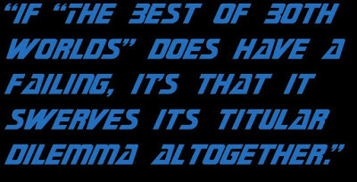 And despite all the odds against it, the fourth-season opener manages to maintain the tension and even escalate matters before resolving the plot in a manner that’s incredibly neat - and incredibly Star Trek. Piller manages to sell the sheer horror of the Wolf 359 massacre without showing a single shot being fired, while somehow conveying the utter loss of self that Picard suffers without having to rely on the sort of shock tactics that Star Trek: Voyager often would in its subsequent Borg stories. Yes, Picard’s line, “Almost human, with just a bit of a headache,” might have had more impact were he staring at the ruined stump of an arm instead of an oversized (and faintly ridiculous) mechanical glove, but I wouldn’t really be wanting to watch that with my kids.