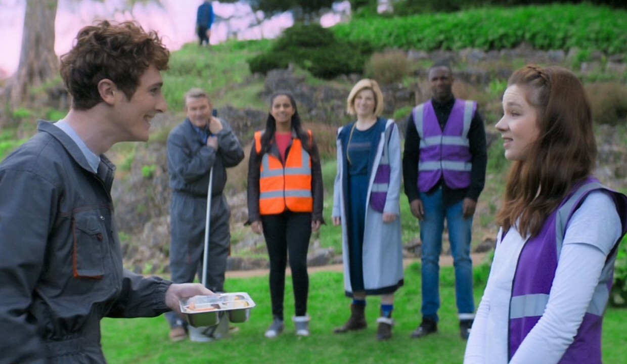 Even in a season populated by such revered actors, the cast of “Kerblam!” still manages to stand out. Household names like Jodie Whittaker’s fellow Broadchurch alumnae, Julie Hesmondhalgh, and comedian Lee Mack certainly deliver performances worthy of their repute, although for me it was the two youngsters who really shone. Claudia Jessie imbues her down-at-heel but eternally optimistic character, Kira, with a spirit so inspiring that when the Doctor comments upon it, she’s only giving voice to what the audience is already thinking. Meanwhile, Kira’s would-be suitor, Leo Flanagan’s bog-cleaning Charlie Duffy, gives a convincing and layered performance that on occasion threatens to steal the whole show.