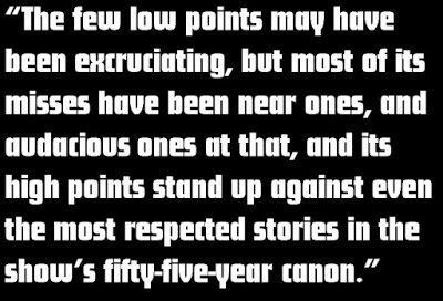 Sadly the series’ traditional Christmas special will now follow Saturday nights, pre-title sequences and 230,400 pixels into the abyss. Particularly with no new Star Wars movie to fall back on, it’ll be lonely this Christmas, though with a title like “Resolution”, there is every chance that the series’ first New Year’s Day special since The End of Time might just provide us with the fireworks that “The Battle of Ranskoor Av Kolos” was missing...