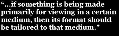 What’s most irritating of all though are the long-term implications of this. Even if the next generation of TVs base their screen dimensions on the 2:1 aspect ratio, then legacy 2:1 media is still going to appear both letterboxed and pillarboxed on their displays, as current Blu-ray standards insist upon a 1920 x 1080 frame (3840 x 2160 for UHD) and iTunes downloads (probably Amazon etc too, though I can’t speak to this) adhere to the same conventions. This means that a 2:1 image is locked into its frame between two black bars, and so if it’s ever viewed on a 2:1 screen, then the only way it could fill that screen would be if it were enlarged, resulting in a softer and incomplete picture. It’d be like it was watching a 2.35:1-letterboxed-in-4:3 VHS movie blown up on an early CRT widescreen telly - unremittingly bloody awful.