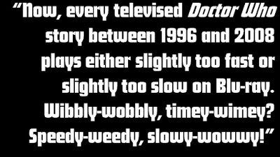 Yet, believe it or not, this wholly unnecessary and potentially misleading Blu-ray release is worth a punt - but only for those classic Doctor Who fans who don’t already own both The Day of the Doctor Blu-ray and the Revisitations 1 DVD box set. For those nineteen people, and only those nineteen people, this Blu-ray release does offer a lot of content in a little box. As was the case with the one-off Spearhead from Space Blu-ray, the packaging is stylish and sits well with both Spearhead and the RTD-era Blu-rays. Alternatively, those keen to lose it amongst their classic Who DVDs can easily reverse it to display the familiar roundel-framed design. I even have to applaud the continued inclusion of a booklet that gives the same sort of contents information as the much-loved DVD booklets once did, as well an informative little write-up on the movie’s significance - particularly when such things are seldom seen these days. Trying to read the contents on one of my Warner Bros Arrow or Flash Blu-ray seasons involves almost completely dismantling them and pulling out the brainy specs.